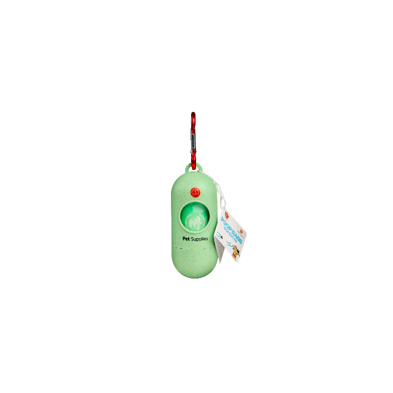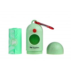 Ekologiczny dyspenser worków na psie odchody. Elegancki pojemnik jest z tworzywa wyprodukowanego w 40% z komponentów pochodzenia naturalnego (słoma ryżowa/pszenna). Zestaw zawiera jedną rolkę zapachowych worków (15 sztuk) o wymiarach 22 cm x 33 cm.